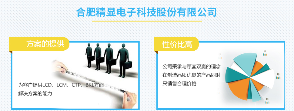 ?合肥精顯電子科技股份有限公司成立于2012年,由液晶行業(yè)知名企業(yè)廈門精顯電子有限公司投資建設(shè),是一家研發(fā)、生產(chǎn)、銷售高品質(zhì)液晶屏(LCD)、液晶顯示模塊(LCM)、背光(LED)、電容式觸摸屏(CTP)等節(jié)能環(huán)保產(chǎn)品并能為顧客提供解決方案的高新科技企業(yè)。 ?公司占地55畝,擁有建筑面積超過(guò)20000平米和潔凈廠房5400平米。 ?公司擁有一個(gè)超過(guò)15年以上LCD行業(yè)運(yùn)營(yíng)制造經(jīng)驗(yàn)的團(tuán)隊(duì)。 ?公司獲得研發(fā)專利20余項(xiàng)。 ?公司通過(guò)C-TPAT認(rèn)證,ISO9001:2008認(rèn)證,產(chǎn)品通過(guò)了ROHS、REACH。 ?我們產(chǎn)品廣泛應(yīng)用于智能儀表(水表,電表,氣表)、家電、儀器儀表、計(jì)量器械、文教 器具、UPS電源、智能手機(jī)機(jī)、平板電腦等電子產(chǎn)品的顯示和控制。目前我們已樹立了良好的品牌形象,并與眾多公司(如GE, Ja...更多>
